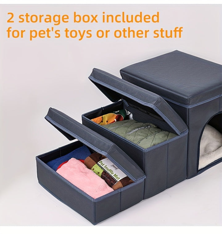 Integrated Storage Compartments: Each step lifts up to reveal ample, discreet storage space for pet supplies, helping to declutter your home.